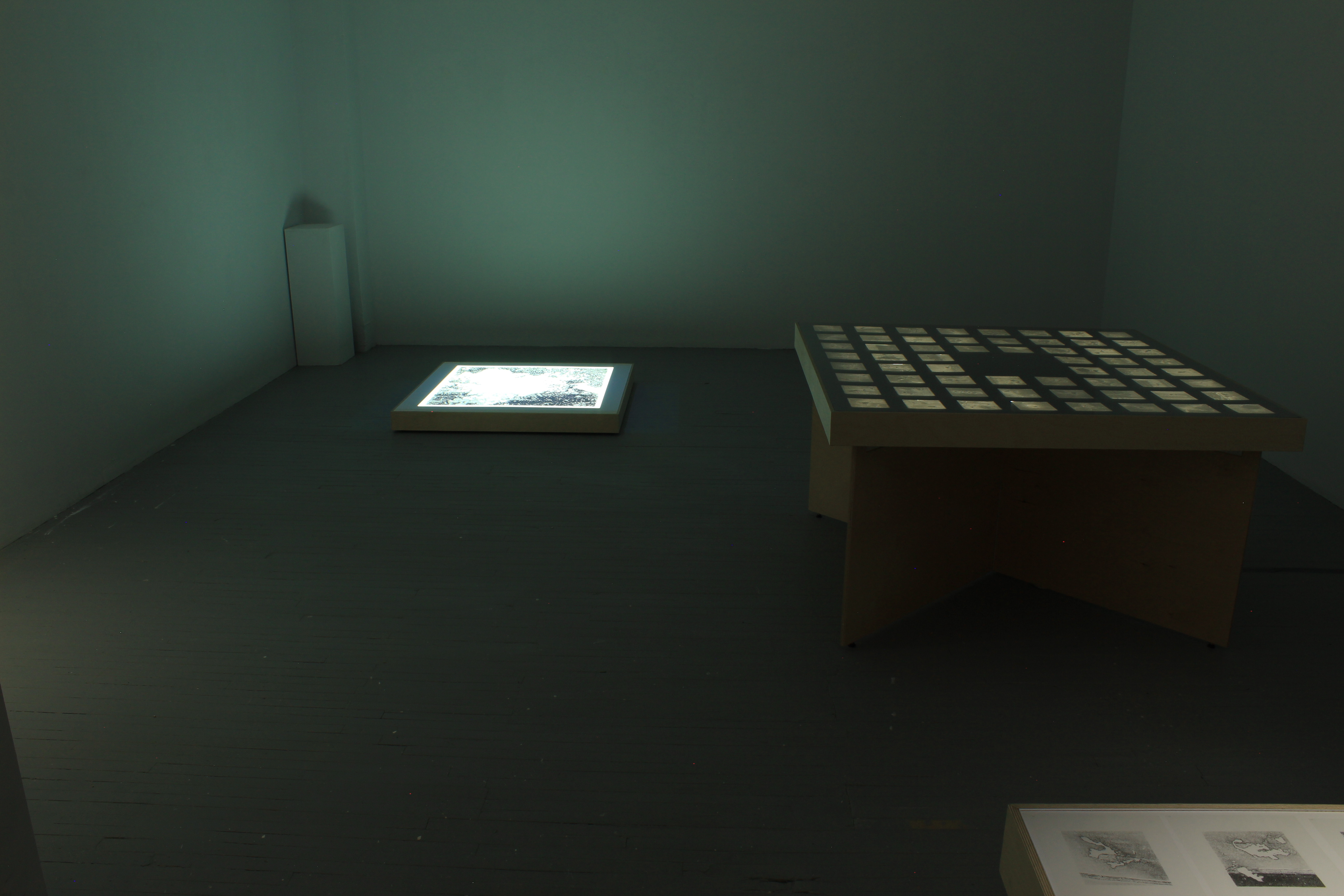 Microcosmes muséaux prend vie grâce au déploiement des 60 monotypes au carbone sur film polyester que Marie-Josée Thomas a créés en scrutant et en s’imprégnant de la texture de certains murs de béton du Musée des beaux-arts de Montréal